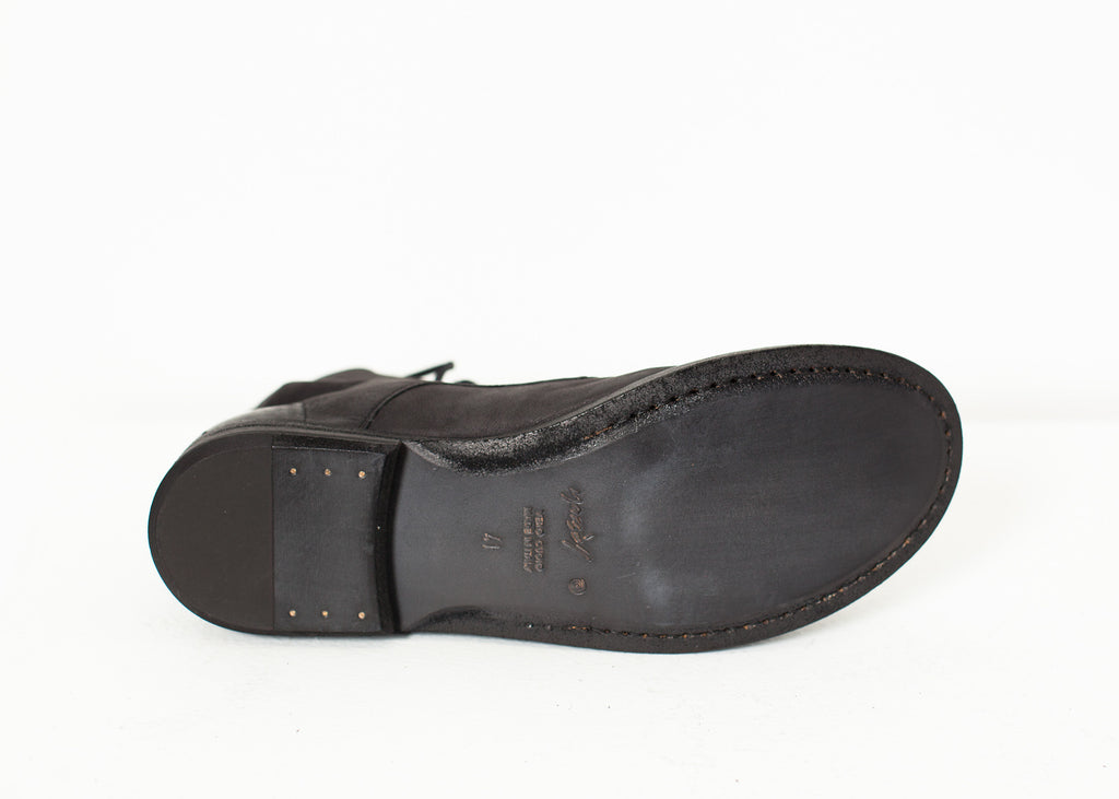 Married aesthetics of innovation and tradition, Marséll crafts shoes of mastering technique. Where modern classism takes wearable shape, anticipate artistic expression epitomized in leather footwear. The Ankle Combat Boot are designed for the "to-go" lifestyle. Comfortable, minimal, yet functional. Color Black. 100% Leather. Made in Italy.