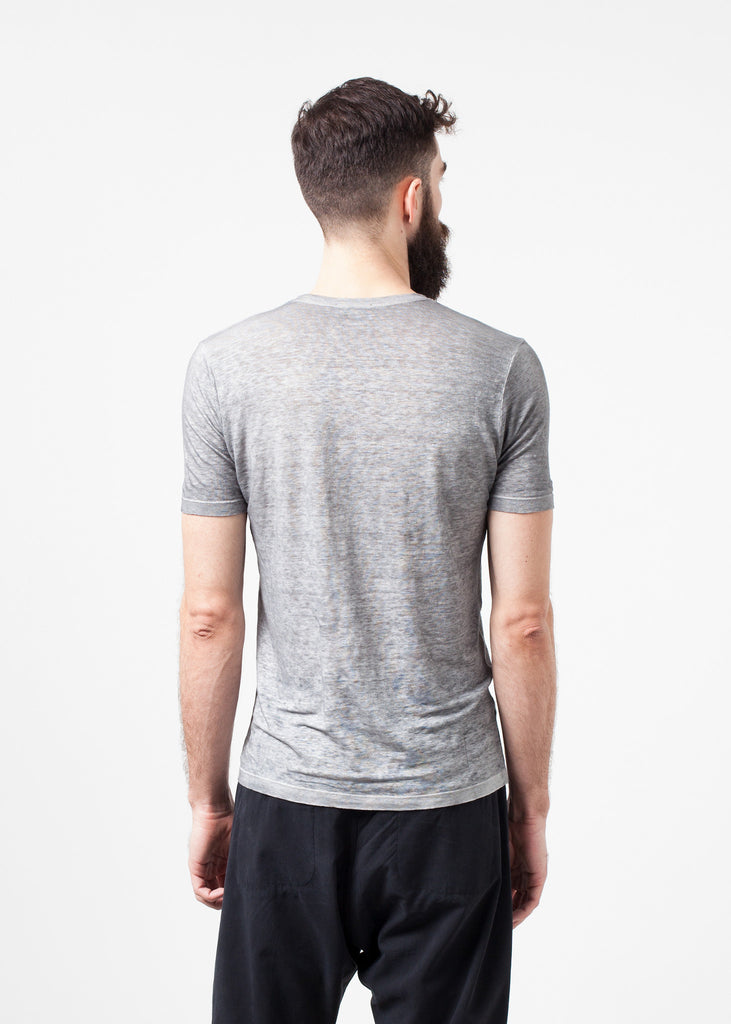 Avant Toi isn't only known for pushing stylistic boundaries, but also for marrying an urban aesthetic with functionality. Make a statement for the standard t-shirt with this one, composed of linen. Durable yet lightweight. Color Dolphin. 100% Linen. Made in Italy. Addis is wearing a Small.