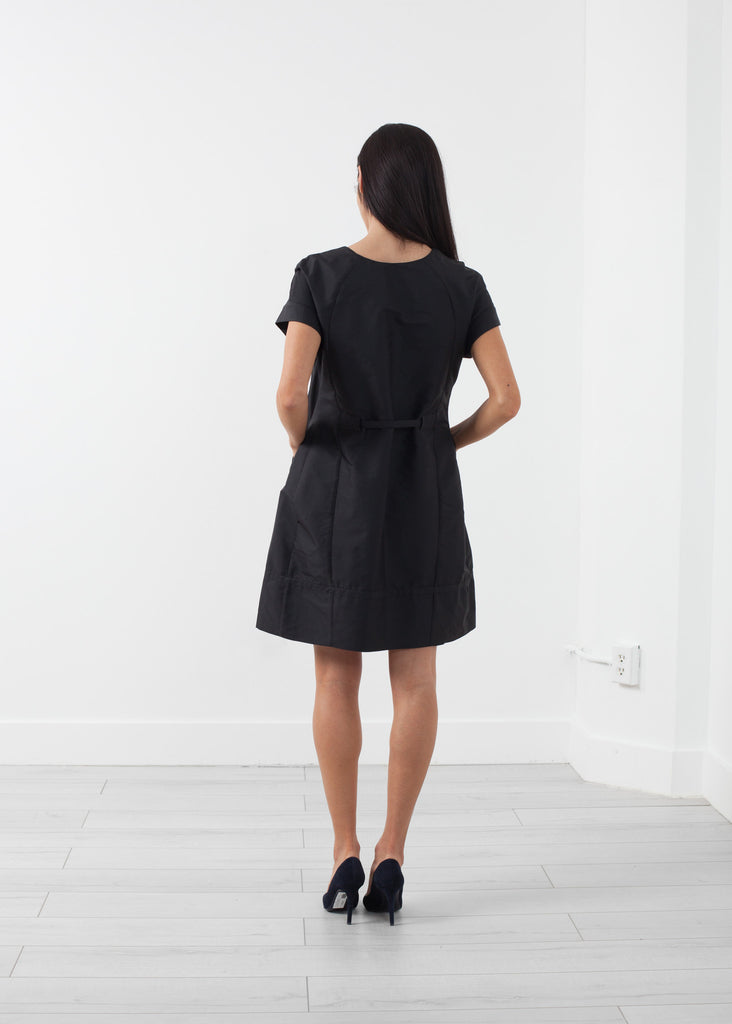 The Retenue Dress offers a wide neckline and a slightly oversized silhouette. Raglan seaming. Drawstring at back waist. Side angled pockets at front. Lilith. Color Black. 100% Polyester.